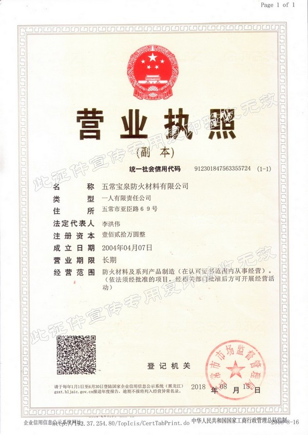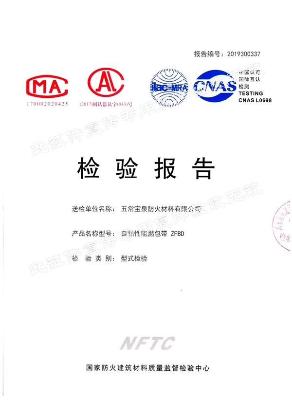 企业简介 五常宝泉防火材料有限公司(黑龙江省宝泉消防设备有限公司)是主要制造、经营、销售防火阻燃材料系列产品。其中以自粘性阻燃包带(ZFBD)、阻火包(PFB)、有机防火堵料(SFD)、室内超薄型钢结构防火涂料(NCB(BCF)-1)为主要产品。宝泉牌防火材料系列产品是普通防火材料的更新换代产品,防火性能优异,具有普通防火材料没有的诸多优点:施工方便、经久耐用、耐火极限高、热传导率低、耐腐蚀、抗老化、无毒无害、环保、可以连续施工等特点。产品广泛应用于电力企业(各型电厂、输变电公司、电建公司、电力公司)、石油化工企业、冶金业、通讯业、地铁、隧道、...